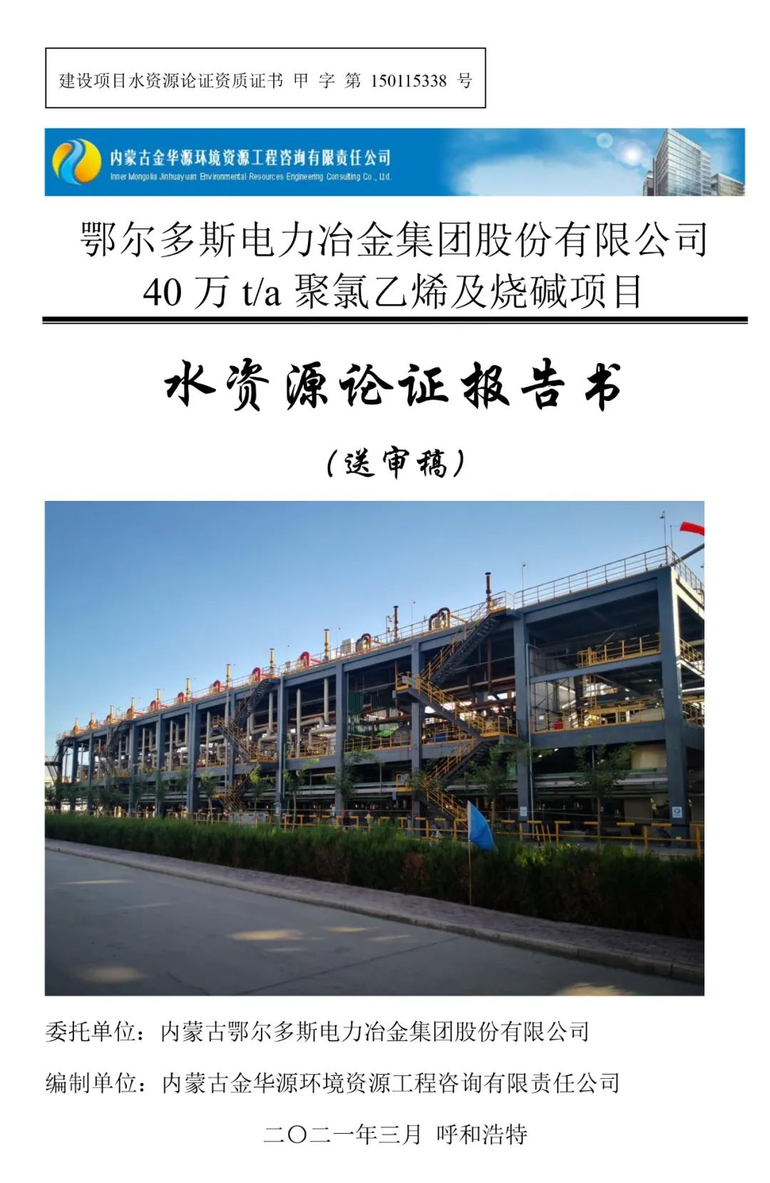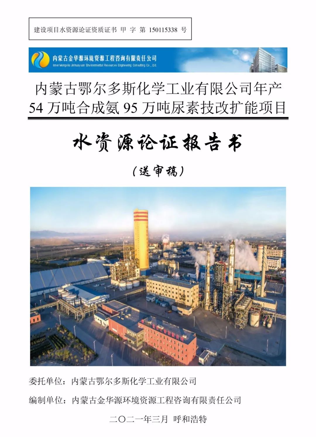 2020年3月19日,由我公司編制的《鄂爾多斯電力冶金集團(tuán)股份有限公司40萬(wàn)t/a聚氯乙烯及燒堿項(xiàng)目水資源論證報(bào)告書(shū)》(PVC二期項(xiàng)目)及《內(nèi)蒙古鄂爾多斯化學(xué)工業(yè)有限公司年產(chǎn)54萬(wàn)噸合成氨95萬(wàn)噸尿素技改擴(kuò)能項(xiàng)目水資源論證報(bào)告書(shū)》(大化肥項(xiàng)目)雙雙順利通過(guò)內(nèi)蒙古自治區(qū)水利廳審查。